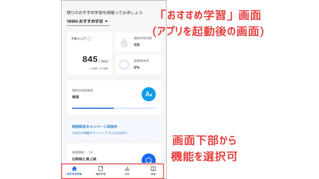 このように、短期間(3~4か月程度)集中して、確実にスコアアップを狙う人にこそ使ってもらいたい、ガチ系のTOEIC対策アプリです。