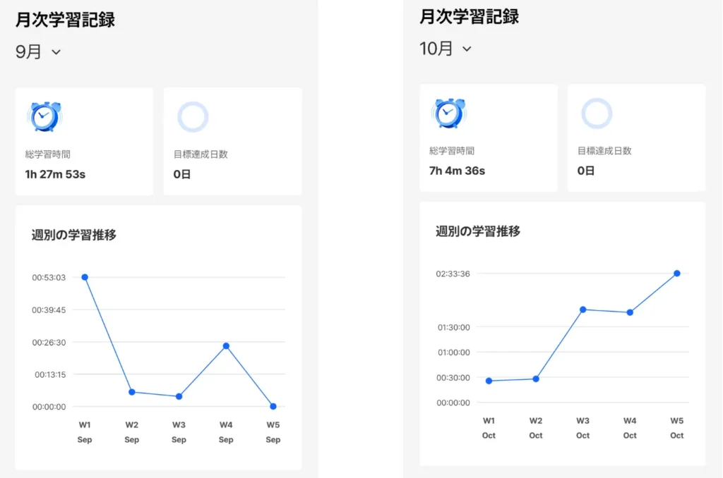 ・2025年 9月 :1時間27分(6か月プラン購入)※