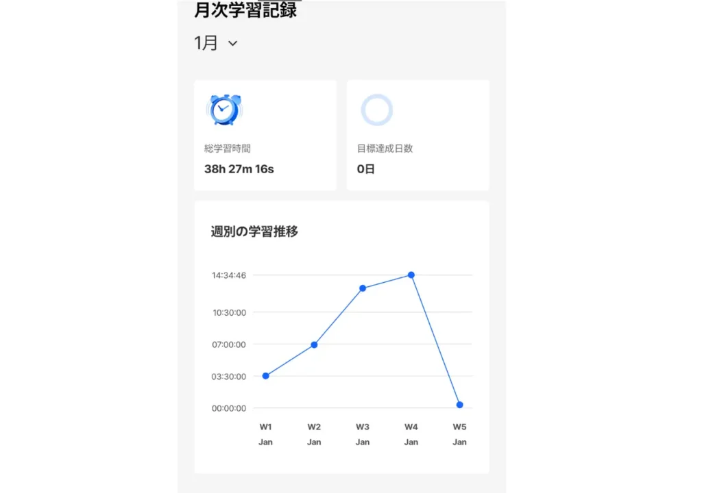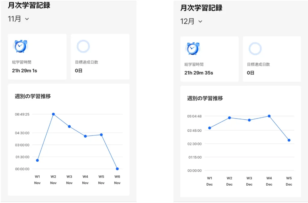 私の場合、学習時間は、2025年10月〜2026年1月の4カ月間の合計で88時間29分でした。